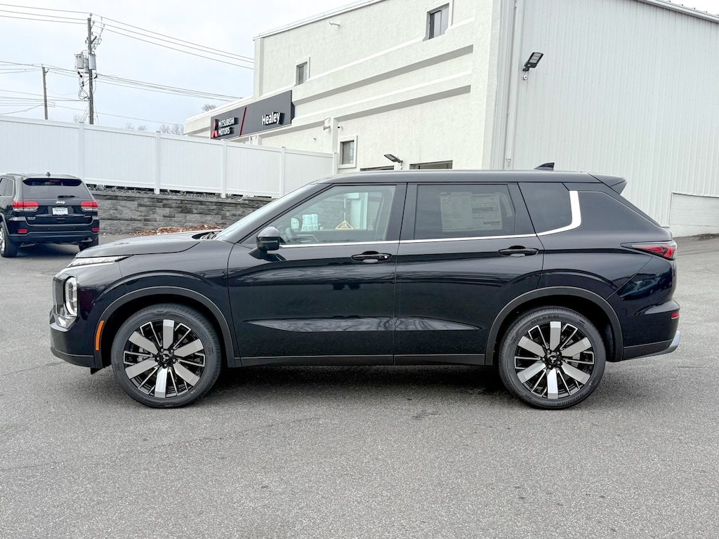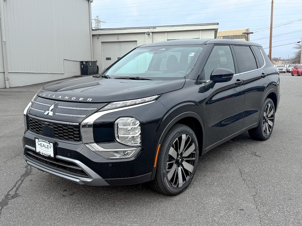 Black 2025 Mitsubishi Outlander SE FWD CVT 2.5L I4 DOHC 16V LEV3-SULEV30 181hp 3rd row seats: split-bench, 4-Wheel Disc Brakes, 8 Speakers, ABS brakes, Air Conditioning, Alloy wheels, AM/FM radio: SiriusXM, Android Auto & Apple CarPlay, Auto High-beam Headlights, Auto-dimming Rear-View mirror, Automatic temperature control, Brake assist, Bumpers: body-color, Driver door bin, Driver vanity mirror, Dual front impact airbags, Dual front side impact airbags, Electronic Stability Control, Emergency communication system: Mitsubishi Connect w/ 24-month trial, Exterior Parking Camera Rear, Four wheel independent suspension, Front anti-roll bar, Front Bucket Seats, Front Center Armrest w/Storage, Front dual zone A/C, Front fog lights, Front reading lights, Fully automatic headlights, Garage door transmitter: HomeLink, Heated door mirrors, Heated Front Bucket Seats, Heated front seats, Illuminated entry, Knee airbag, Leather Shift Knob, Leather steering wheel, Low tire pressure warning, Navigation System, Occupant sensing airbag, Outside temperature display, Overhead airbag, Overhead console, Panic alarm, Passenger door bin, Passenger vanity mirror, Power door mirrors, Power driver seat, Power Liftgate, Power steering, Power windows, Radio data system, Radio: AM/FM 12.3" Navigation w/Smartphone-Link, Rain sensing wipers, Rear anti-roll bar, Rear seat center armrest, Rear side impact airbag, Rear window defroster, Rear window wiper, Reclining 3rd row seat, Remote keyless entry, Security system, Speed control, Speed-Sensitive Wipers, Split folding rear seat, Spoiler, Steering wheel mounted audio controls, Synthetic Leather Seating Surfaces, Tachometer, Telescoping steering wheel, Tilt steering wheel, Traction control, Trip computer, Turn signal indicator mirrors, Variably intermittent wipers, Wheels: 20" Two-Tone Alloy.