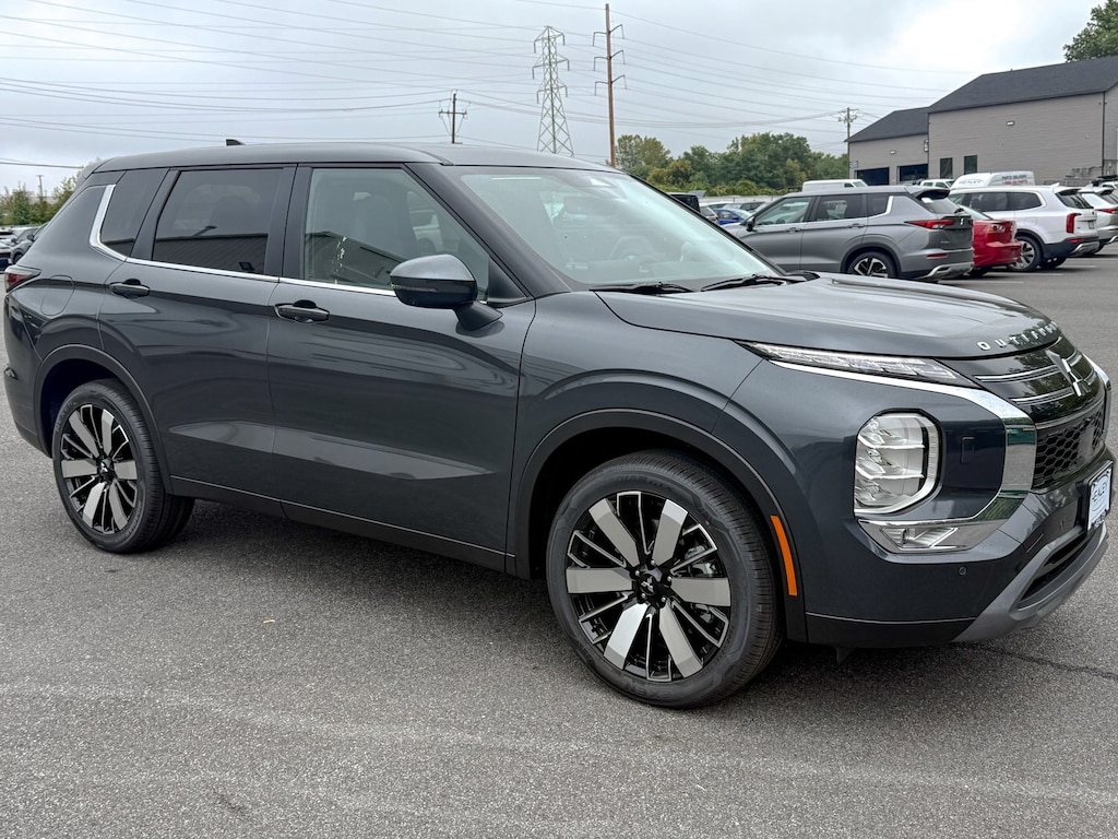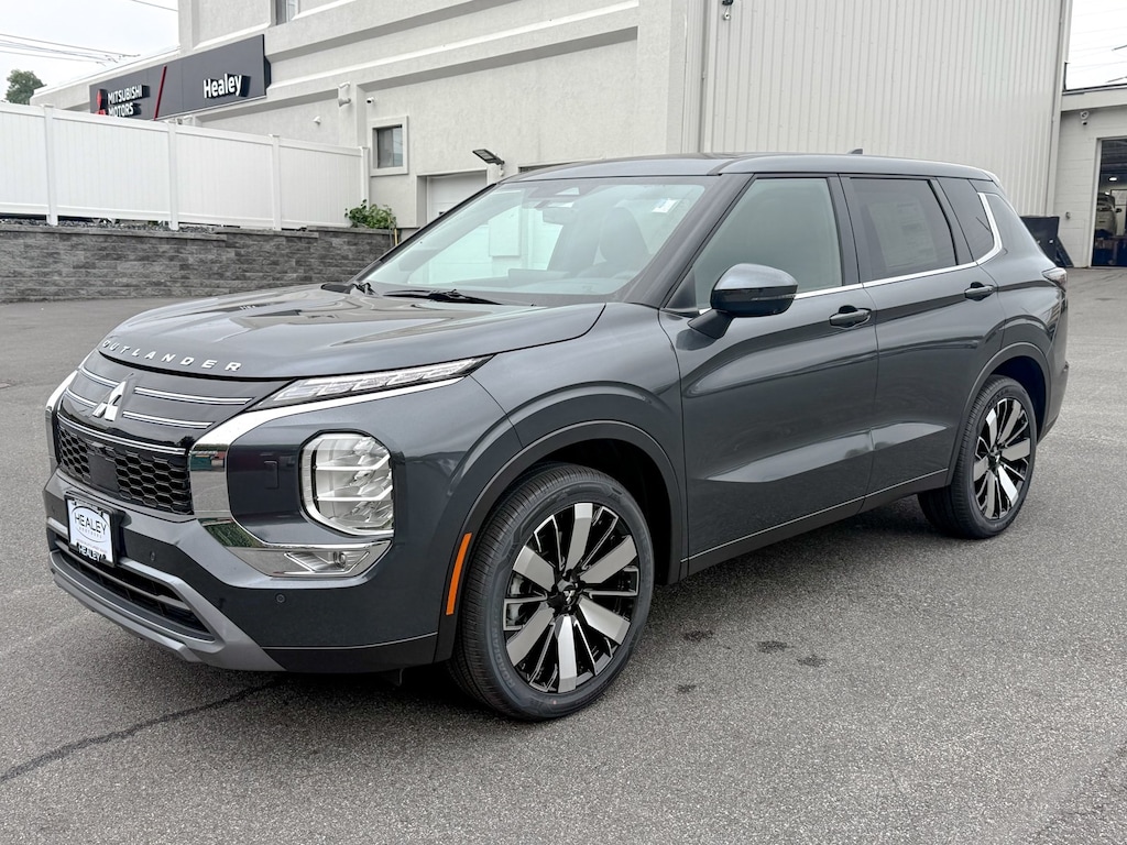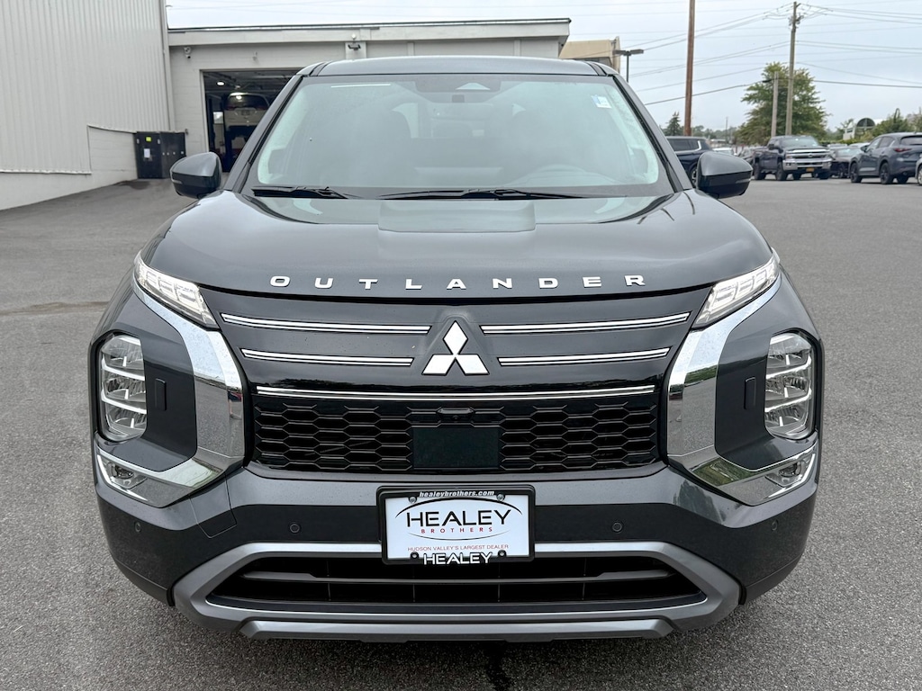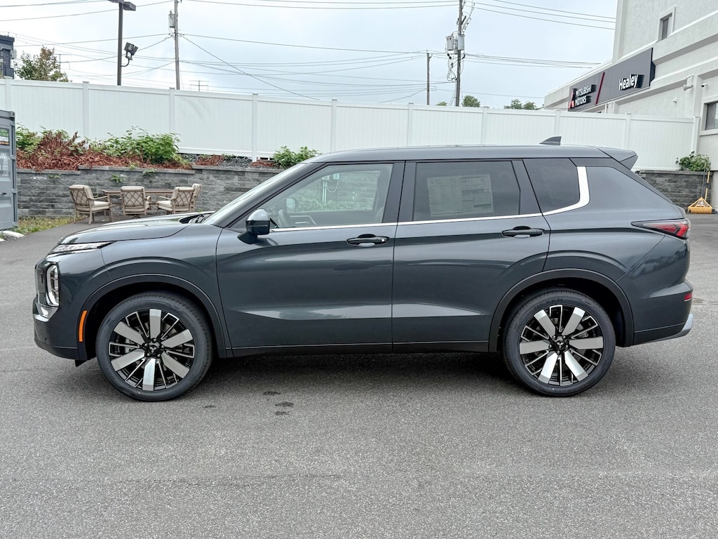 Gray 2025 Mitsubishi Outlander 4WD CVT 2.5L I4 DOHC 16V LEV3-ULEV50 181hp 3rd row seats: split-bench, 4-Wheel Disc Brakes, 8 Speakers, ABS brakes, Air Conditioning, Alloy wheels, AM/FM radio: SiriusXM, Android Auto & Apple CarPlay, Auto High-beam Headlights, Auto-dimming Rear-View mirror, Automatic temperature control, Brake assist, Bumpers: body-color, Driver door bin, Driver vanity mirror, Dual front impact airbags, Dual front side impact airbags, Electronic Stability Control, Emergency communication system: Mitsubishi Connect w/ 24-month trial, Exterior Parking Camera Rear, Four wheel independent suspension, Front anti-roll bar, Front Bucket Seats, Front Center Armrest w/Storage, Front dual zone A/C, Front fog lights, Front reading lights, Fully automatic headlights, Garage door transmitter: HomeLink, Headlight cleaning, Heated door mirrors, Heated Front Bucket Seats, Heated front seats, Illuminated entry, Knee airbag, Leather Shift Knob, Leather steering wheel, Low tire pressure warning, Navigation System, Occupant sensing airbag, Outside temperature display, Overhead airbag, Overhead console, Panic alarm, Passenger door bin, Passenger vanity mirror, Power door mirrors, Power driver seat, Power Liftgate, Power steering, Power windows, Radio data system, Radio: AM/FM 12.3" Navigation w/Smartphone-Link, Rain sensing wipers, Rear anti-roll bar, Rear seat center armrest, Rear side impact airbag, Rear window defroster, Rear window wiper, Reclining 3rd row seat, Remote keyless entry, Security system, Speed control, Speed-Sensitive Wipers, Split folding rear seat, Spoiler, Steering wheel mounted audio controls, Synthetic Leather Seating Surfaces, Tachometer, Telescoping steering wheel, Tilt steering wheel, Traction control, Trip computer, Turn signal indicator mirrors, Variably intermittent wipers.