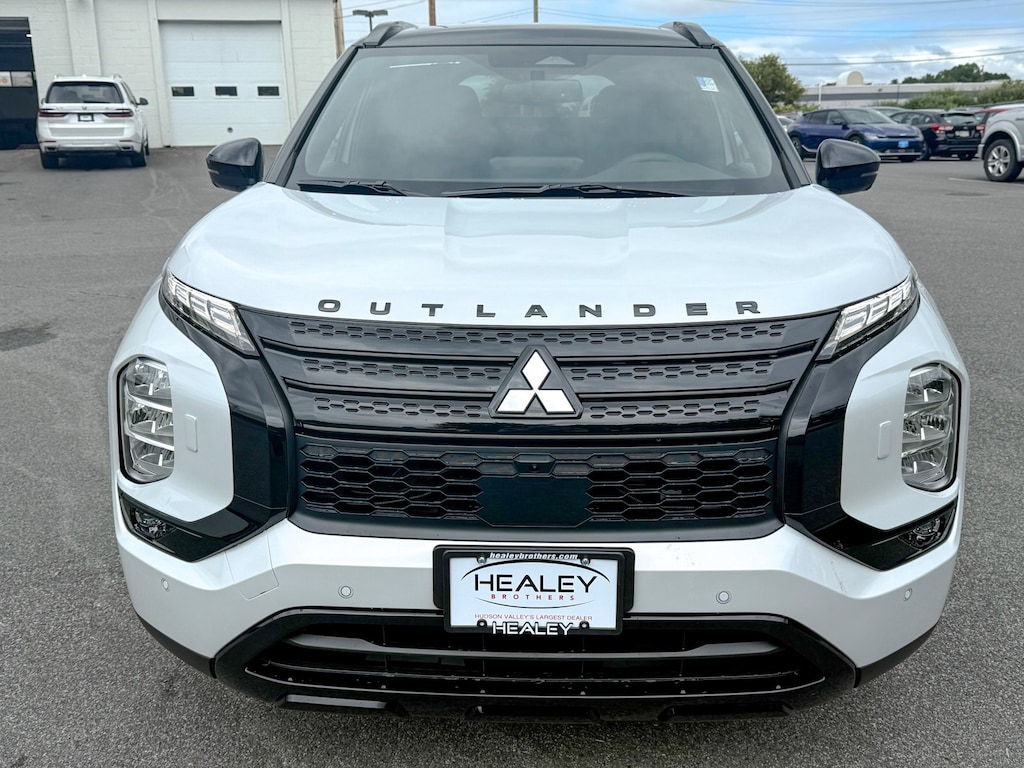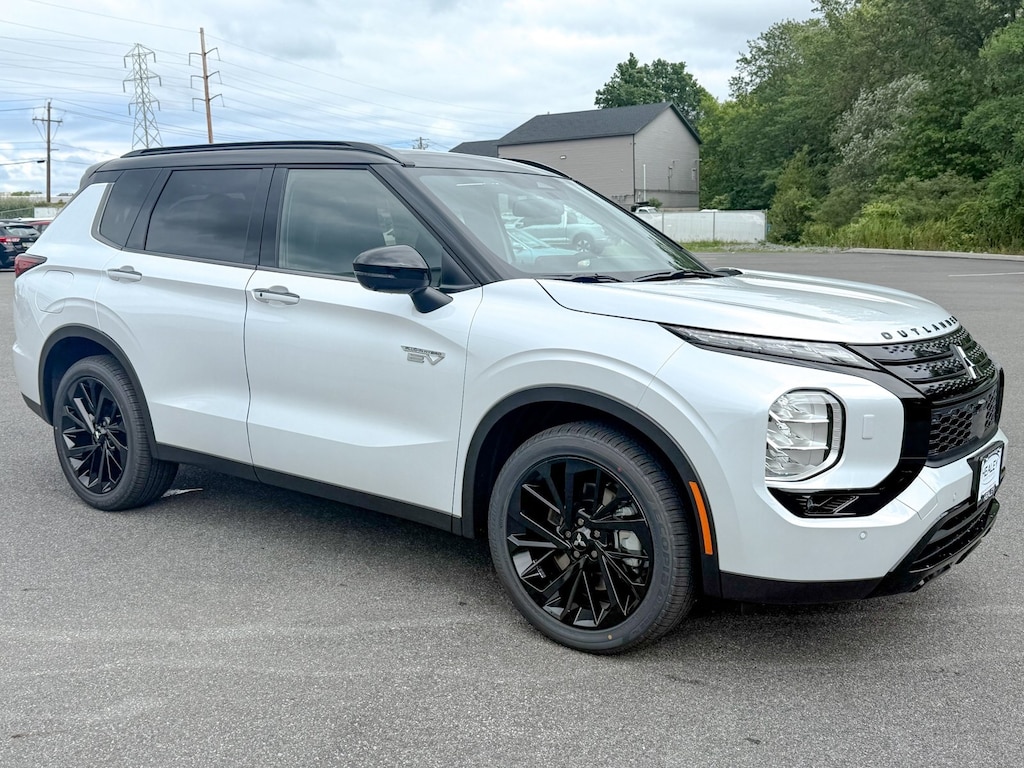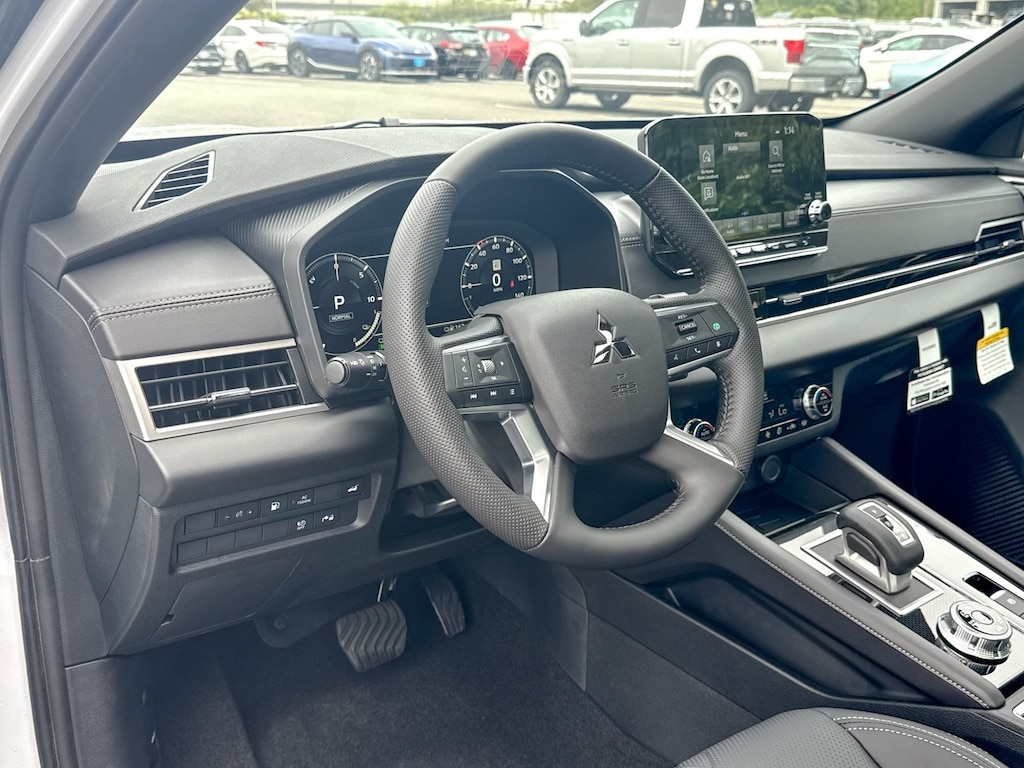 White 2025 Mitsubishi Outlander PHEV 4WD 1-Speed Automatic 2.4L 4-Cylinder DI DOHC 3rd row seats: split-bench, 4-Wheel Disc Brakes, ABS brakes, Air Conditioning, Alloy wheels, AM/FM radio: SiriusXM, Android Auto & Apple CarPlay, Auto High-beam Headlights, Auto-dimming Rear-View mirror, Automatic temperature control, Brake assist, Bumpers: body-color, Driver door bin, Driver vanity mirror, Dual front impact airbags, Dual front side impact airbags, Electronic Stability Control, Emergency communication system: Mitsubishi Connect w/ 24-month trial, Four wheel independent suspension, Front anti-roll bar, Front Bucket Seats, Front Center Armrest w/Storage, Front dual zone A/C, Front fog lights, Front reading lights, Fully automatic headlights, Headlight cleaning, Heated door mirrors, Heated Front Bucket Seats, Heated front seats, Heated rear seats, Heated steering wheel, Illuminated entry, Knee airbag, Leather Shift Knob, Leather steering wheel, Low tire pressure warning, Memory seat, Navigation System, Occupant sensing airbag, Outside temperature display, Overhead airbag, Overhead console, Panic alarm, Passenger door bin, Passenger vanity mirror, Power door mirrors, Power driver seat, Power Liftgate, Power moonroof, Power passenger seat, Power steering, Power windows, Radio data system, Radio: AM/FM 9" Smartphone Link Display Audio, Rain sensing wipers, Rear air conditioning, Rear anti-roll bar, Rear seat center armrest, Rear side impact airbag, Rear window defroster, Rear window wiper, Reclining 3rd row seat, Remote keyless entry, Security system, Speed control, Speed-Sensitive Wipers, Split folding rear seat, Spoiler, Steering wheel mounted audio controls, Tachometer, Telescoping steering wheel, Tilt steering wheel, Traction control, Trip computer, Turn signal indicator mirrors, Variably intermittent wipers.