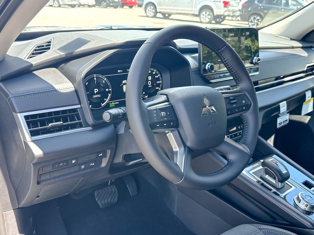 Gray 2025 Mitsubishi Outlander PHEV 4WD 1-Speed Automatic 2.4L 4-Cylinder DI DOHC 3rd row seats: split-bench, 4-Wheel Disc Brakes, 6 Speakers, ABS brakes, Air Conditioning, Alloy wheels, AM/FM radio: SiriusXM, Android Auto & Apple CarPlay, Auto High-beam Headlights, Automatic temperature control, Brake assist, Bumpers: body-color, Driver door bin, Driver vanity mirror, Dual front impact airbags, Dual front side impact airbags, Electronic Stability Control, Emergency communication system: Mitsubishi Connect w/ 24-month trial, Four wheel independent suspension, Front anti-roll bar, Front Bucket Seats, Front Center Armrest w/Storage, Front dual zone A/C, Front fog lights, Front reading lights, Fully automatic headlights, Headlight cleaning, Heated door mirrors, Heated Front Bucket Seats, Heated front seats, Illuminated entry, Knee airbag, Leather Shift Knob, Leather steering wheel, Low tire pressure warning, Navigation System, Occupant sensing airbag, Outside temperature display, Overhead airbag, Overhead console, Panic alarm, Passenger door bin, Passenger vanity mirror, Power door mirrors, Power driver seat, Power Liftgate, Power steering, Power windows, Radio data system, Radio: AM/FM 9" Smartphone Link Display Audio, Rain sensing wipers, Rear anti-roll bar, Rear seat center armrest, Rear side impact airbag, Rear window defroster, Rear window wiper, Reclining 3rd row seat, Remote keyless entry, Security system, Speed control, Speed-Sensitive Wipers, Split folding rear seat, Spoiler, Steering wheel mounted audio controls, Synthetic Leather Seating Surfaces, Tachometer, Telescoping steering wheel, Tilt steering wheel, Traction control, Trip computer, Turn signal indicator mirrors, Variably intermittent wipers, Wheels: 20" Two-Tone Alloy.