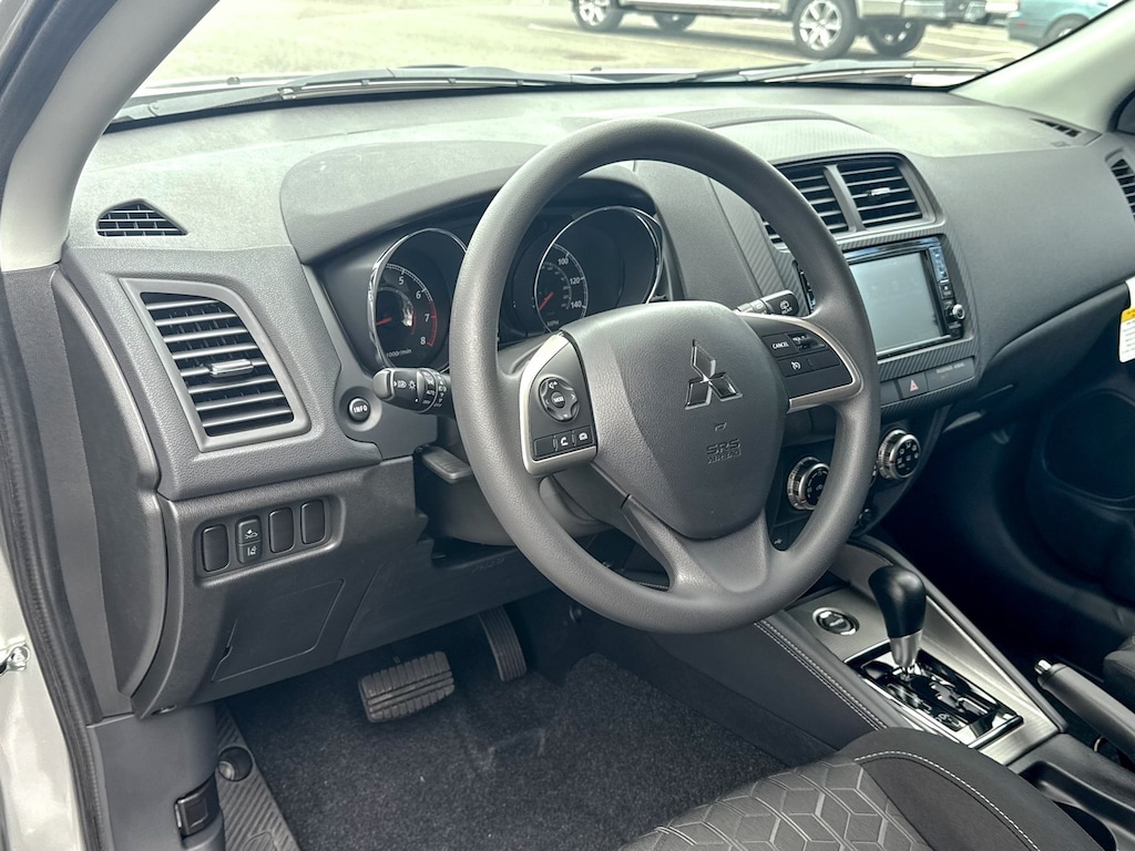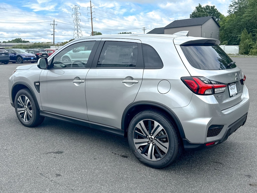 Silver 2025 Mitsubishi Outlander Sport 4WD CVT 2.0L I4 SMPI DOHC 16V LEV3-ULEV70 148hp 4-Wheel Disc Brakes, ABS brakes, Air Conditioning, Auto High-beam Headlights, Auto-dimming Rear-View mirror, Automatic temperature control, Brake assist, Bumpers: body-color, Delay-off headlights, Driver door bin, Driver vanity mirror, Dual front impact airbags, Dual front side impact airbags, Electronic Stability Control, Exterior Parking Camera Rear, Four wheel independent suspension, Front anti-roll bar, Front Bucket Seats, Front Center Armrest, Front reading lights, Fully automatic headlights, Heated door mirrors, Illuminated entry, Knee airbag, Low tire pressure warning, Occupant sensing airbag, Outside temperature display, Overhead airbag, Panic alarm, Passenger door bin, Passenger vanity mirror, Power door mirrors, Power steering, Power windows, Radio data system, Rain sensing wipers, Rear anti-roll bar, Rear seat center armrest, Rear window defroster, Rear window wiper, Remote keyless entry, Security system, Speed control, Speed-sensing steering, Split folding rear seat, Spoiler, Steering wheel mounted audio controls, Tachometer, Telescoping steering wheel, Tilt steering wheel, Traction control, Trip computer, Variably intermittent wipers.