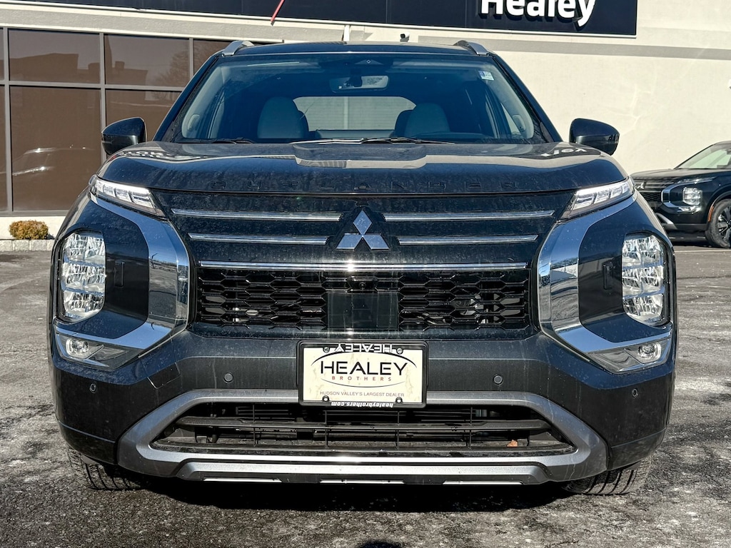 Gray 2025 Mitsubishi Outlander 4WD CVT 2.5L I4 DOHC 16V LEV3-ULEV50 181hp 3rd row seats: split-bench, 4-Wheel Disc Brakes, ABS brakes, Air Conditioning, Alloy wheels, AM/FM radio: SiriusXM, Android Auto & Apple CarPlay, Auto High-beam Headlights, Automatic temperature control, Brake assist, Bumpers: body-color, Driver door bin, Driver vanity mirror, Dual front impact airbags, Dual front side impact airbags, Electronic Stability Control, Emergency communication system: Mitsubishi Connect w/ 24-month trial, Exterior Parking Camera Rear, Four wheel independent suspension, Front anti-roll bar, Front Bucket Seats, Front Center Armrest w/Storage, Front dual zone A/C, Front fog lights, Front reading lights, Fully automatic headlights, Garage door transmitter: HomeLink, Headlight cleaning, Heated door mirrors, Heated front seats, Heated rear seats, Heated steering wheel, Illuminated entry, Knee airbag, Leather Appointed Seating Surfaces, Leather Shift Knob, Leather steering wheel, Low tire pressure warning, Memory seat, Navigation System, Occupant sensing airbag, Outside temperature display, Overhead airbag, Overhead console, Panic alarm, Passenger door bin, Passenger vanity mirror, Power door mirrors, Power driver seat, Power Liftgate, Power moonroof: Panoramic, Power passenger seat, Power steering, Power windows, Radio data system, Radio: AM/FM 12.3" Navigation w/Smartphone-Link, Rain sensing wipers, Rear air conditioning, Rear anti-roll bar, Rear seat center armrest, Rear side impact airbag, Rear window defroster, Rear window wiper, Reclining 3rd row seat, Remote keyless entry, Security system, Speed control, Speed-Sensitive Wipers, Split folding rear seat, Spoiler, Steering wheel mounted audio controls, Tachometer, Telescoping steering wheel, Tilt steering wheel, Traction control, Trip computer, Turn signal indicator mirrors, Variably intermittent wipers, Wheels: 20" Two-Tone Alloy.
