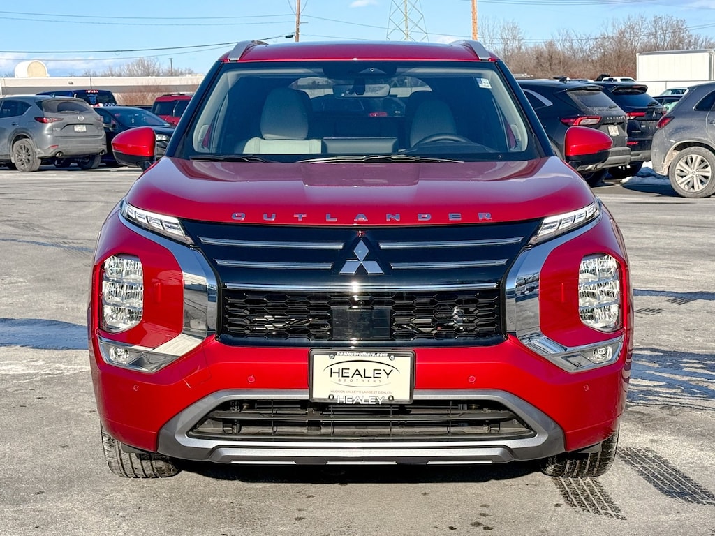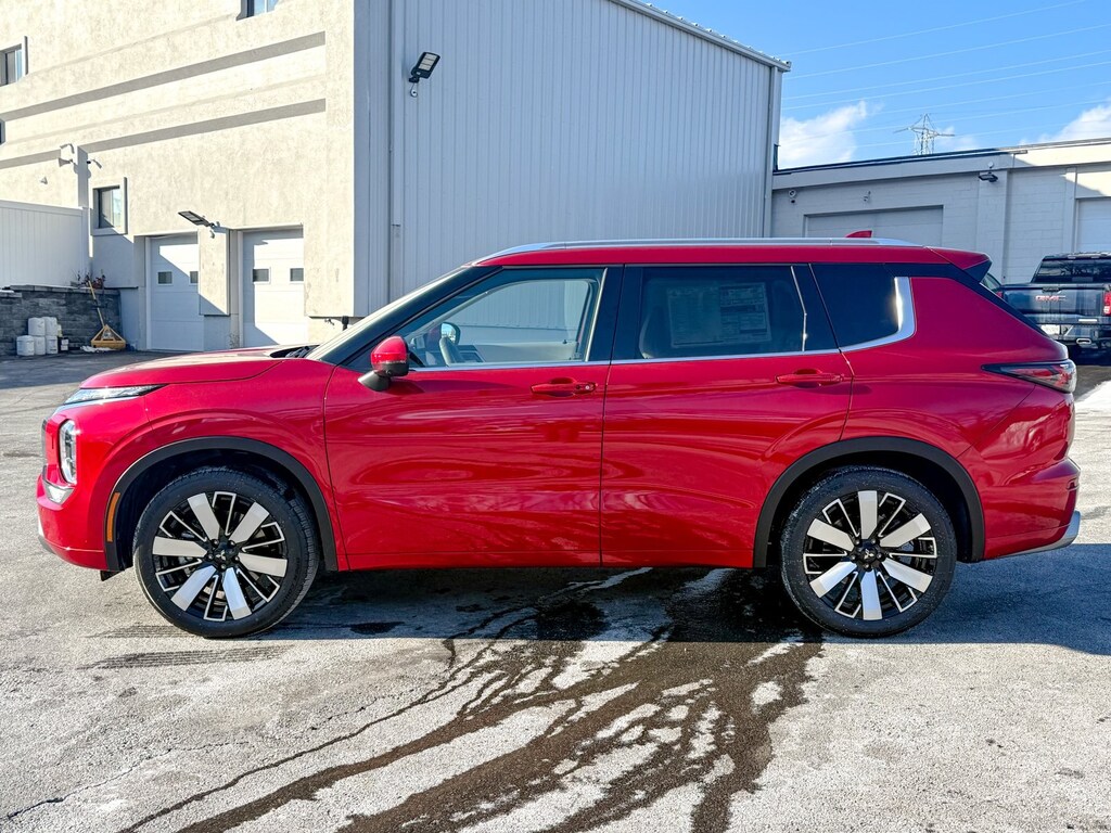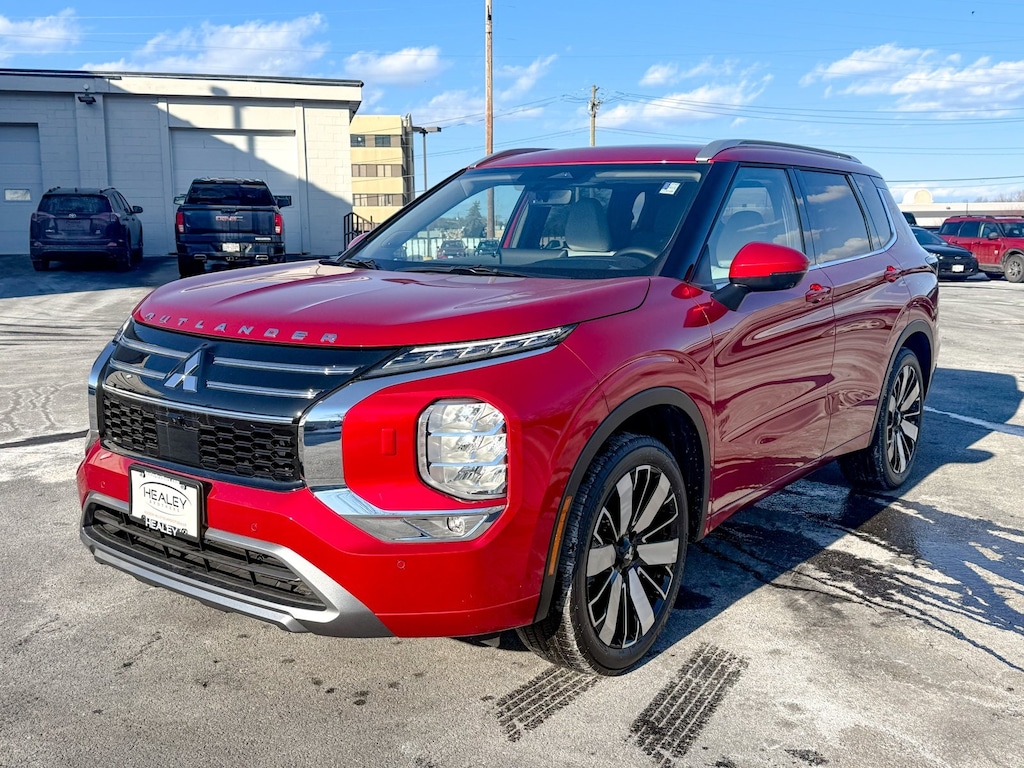 Red 2025 Mitsubishi Outlander SEL 4WD CVT 2.5L I4 DOHC 16V LEV3-ULEV50 181hp ABS brakes, Active Cruise Control, Alloy wheels, Electronic Stability Control, Front dual zone A/C, Heated door mirrors, Heated Front Bucket Seats, Heated front seats, Heated rear seats, Illuminated entry, Low tire pressure warning, Navigation System, Power Liftgate, Remote keyless entry, Traction control.