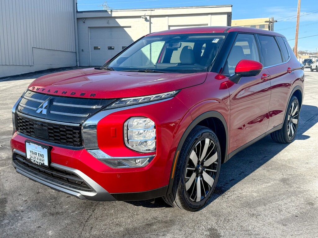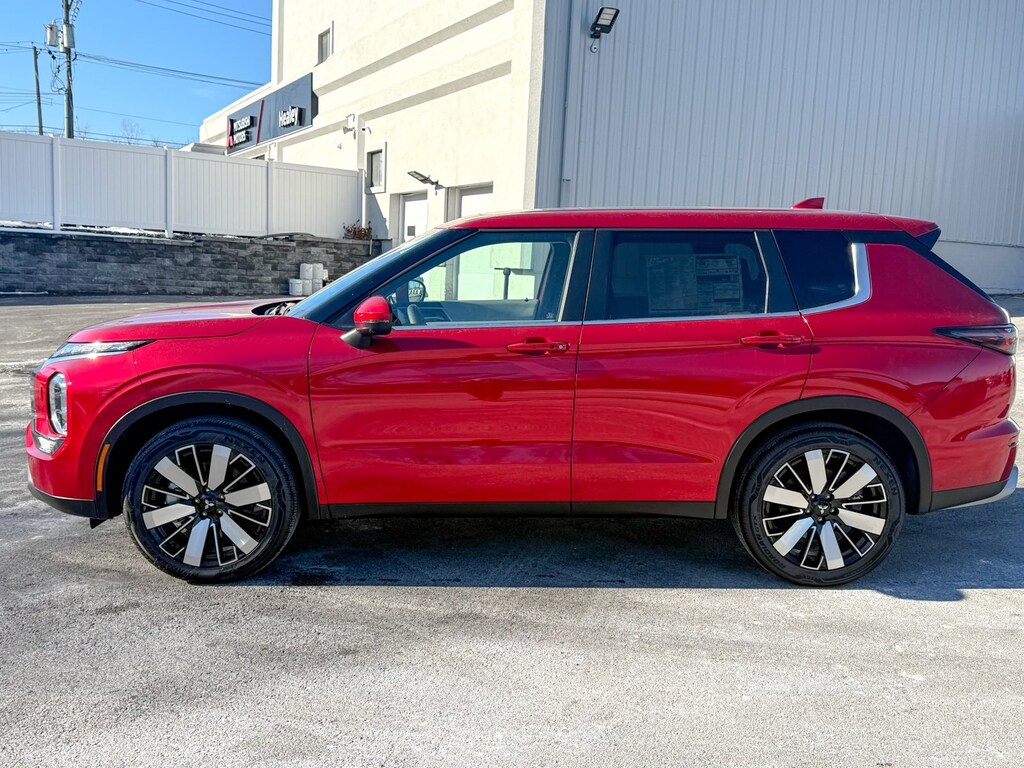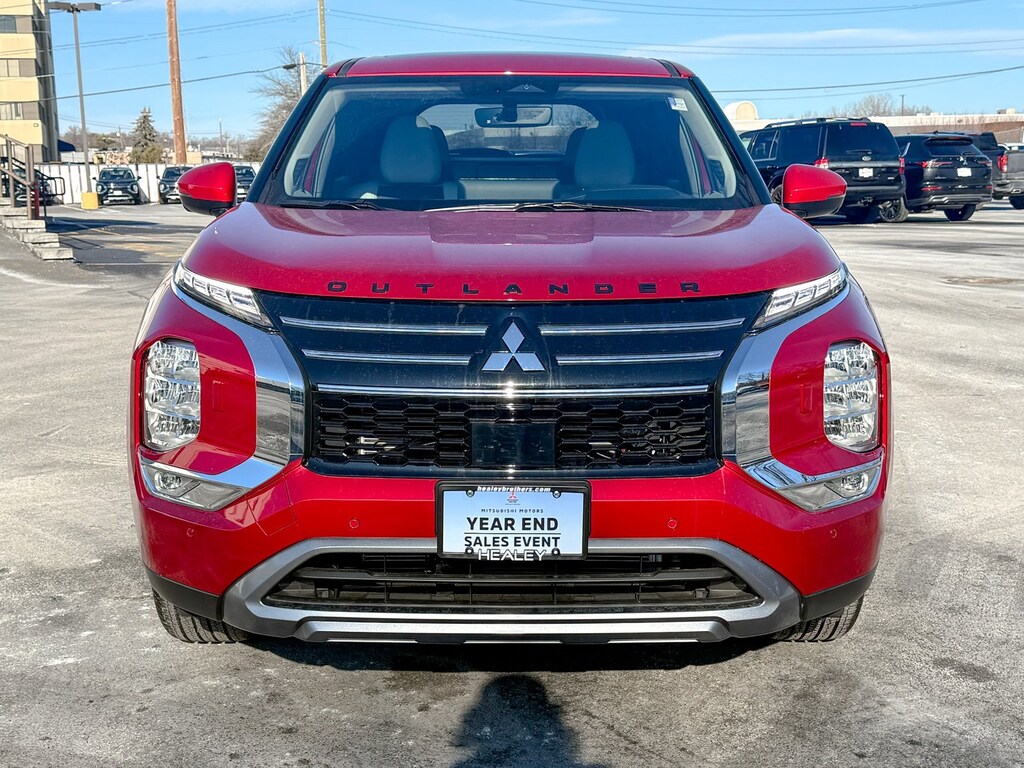Red 2025 Mitsubishi Outlander 4WD CVT 2.5L I4 DOHC 16V LEV3-ULEV50 181hp 3rd row seats: split-bench, 4-Wheel Disc Brakes, 8 Speakers, ABS brakes, Air Conditioning, Alloy wheels, AM/FM radio: SiriusXM, Android Auto & Apple CarPlay, Auto High-beam Headlights, Auto-dimming Rear-View mirror, Automatic temperature control, Brake assist, Bumpers: body-color, Driver door bin, Driver vanity mirror, Dual front impact airbags, Dual front side impact airbags, Electronic Stability Control, Emergency communication system: Mitsubishi Connect w/ 24-month trial, Exterior Parking Camera Rear, Four wheel independent suspension, Front anti-roll bar, Front Bucket Seats, Front Center Armrest w/Storage, Front dual zone A/C, Front fog lights, Front reading lights, Fully automatic headlights, Garage door transmitter: HomeLink, Headlight cleaning, Heated door mirrors, Heated Front Bucket Seats, Heated front seats, Illuminated entry, Knee airbag, Leather Shift Knob, Leather steering wheel, Low tire pressure warning, Navigation System, Occupant sensing airbag, Outside temperature display, Overhead airbag, Overhead console, Panic alarm, Passenger door bin, Passenger vanity mirror, Power door mirrors, Power driver seat, Power Liftgate, Power steering, Power windows, Radio data system, Radio: AM/FM 12.3" Navigation w/Smartphone-Link, Rain sensing wipers, Rear anti-roll bar, Rear seat center armrest, Rear side impact airbag, Rear window defroster, Rear window wiper, Reclining 3rd row seat, Remote keyless entry, Security system, Speed control, Speed-Sensitive Wipers, Split folding rear seat, Spoiler, Steering wheel mounted audio controls, Synthetic Leather Seating Surfaces, Tachometer, Telescoping steering wheel, Tilt steering wheel, Traction control, Trip computer, Turn signal indicator mirrors, Variably intermittent wipers.