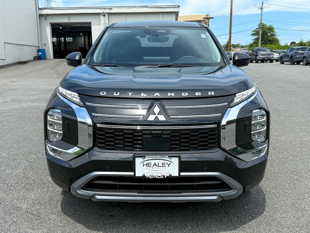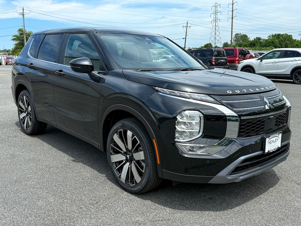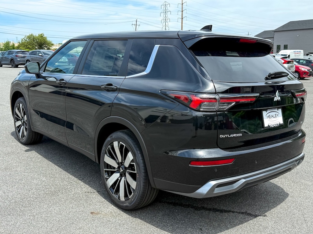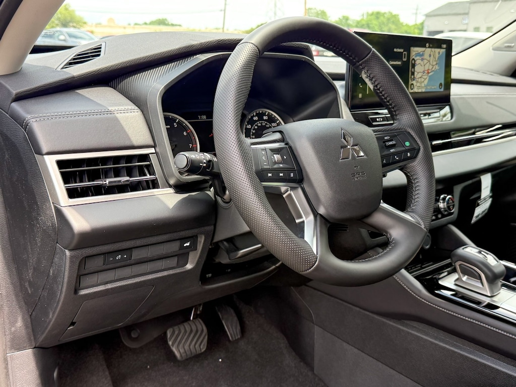 Black 2025 Mitsubishi Outlander 4WD CVT 2.5L I4 DOHC 16V LEV3-ULEV50 181hp 3rd row seats: split-bench, 4-Wheel Disc Brakes, 8 Speakers, ABS brakes, Air Conditioning, Alloy wheels, AM/FM radio: SiriusXM, Android Auto & Apple CarPlay, Auto High-beam Headlights, Auto-dimming Rear-View mirror, Automatic temperature control, Brake assist, Bumpers: body-color, Driver door bin, Driver vanity mirror, Dual front impact airbags, Dual front side impact airbags, Electronic Stability Control, Emergency communication system: Mitsubishi Connect w/ 24-month trial, Exterior Parking Camera Rear, Four wheel independent suspension, Front anti-roll bar, Front Bucket Seats, Front Center Armrest w/Storage, Front dual zone A/C, Front fog lights, Front reading lights, Fully automatic headlights, Garage door transmitter: HomeLink, Headlight cleaning, Heated door mirrors, Heated Front Bucket Seats, Heated front seats, Illuminated entry, Knee airbag, Leather Shift Knob, Leather steering wheel, Low tire pressure warning, Navigation System, Occupant sensing airbag, Outside temperature display, Overhead airbag, Overhead console, Panic alarm, Passenger door bin, Passenger vanity mirror, Power door mirrors, Power driver seat, Power Liftgate, Power steering, Power windows, Radio data system, Radio: AM/FM 12.3" Navigation w/Smartphone-Link, Rain sensing wipers, Rear anti-roll bar, Rear seat center armrest, Rear side impact airbag, Rear window defroster, Rear window wiper, Reclining 3rd row seat, Remote keyless entry, Security system, Speed control, Speed-Sensitive Wipers, Split folding rear seat, Spoiler, Steering wheel mounted audio controls, Synthetic Leather Seating Surfaces, Tachometer, Telescoping steering wheel, Tilt steering wheel, Traction control, Trip computer, Turn signal indicator mirrors, Variably intermittent wipers.