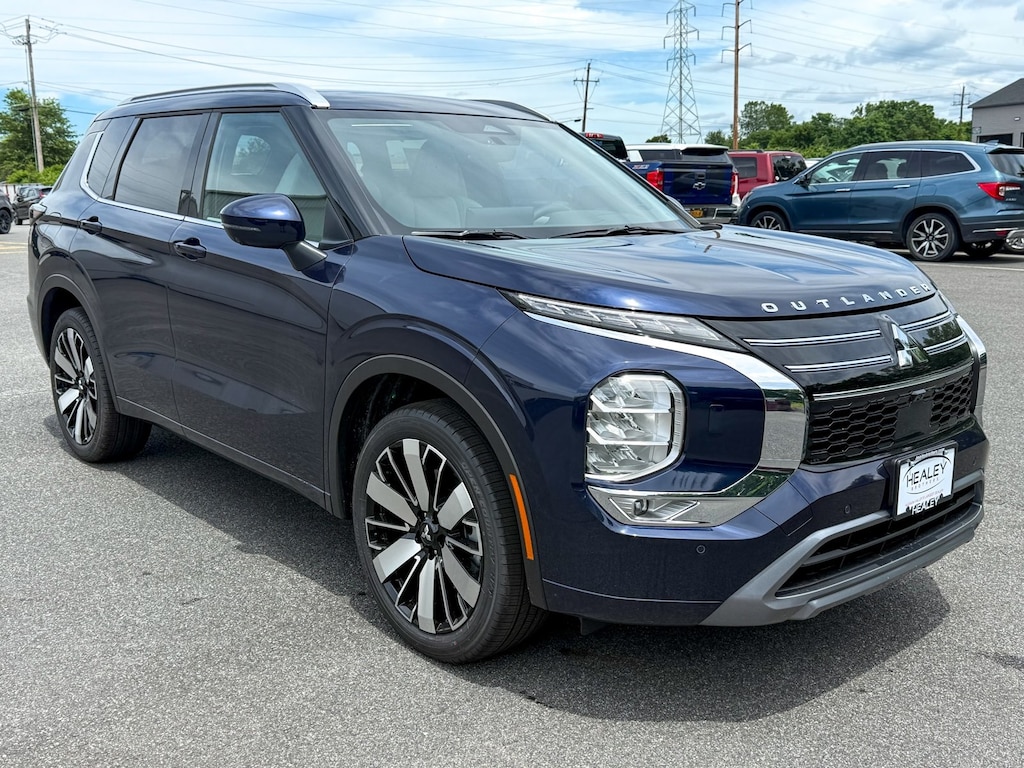 Blue 2025 Mitsubishi Outlander 4WD CVT 2.5L I4 DOHC 16V LEV3-ULEV50 181hp 3rd row seats: split-bench, 4-Wheel Disc Brakes, ABS brakes, Air Conditioning, Alloy wheels, AM/FM radio: SiriusXM, Android Auto & Apple CarPlay, Auto High-beam Headlights, Automatic temperature control, Brake assist, Bumpers: body-color, Driver door bin, Driver vanity mirror, Dual front impact airbags, Dual front side impact airbags, Electronic Stability Control, Emergency communication system: Mitsubishi Connect w/ 24-month trial, Exterior Parking Camera Rear, Four wheel independent suspension, Front anti-roll bar, Front Bucket Seats, Front Center Armrest w/Storage, Front dual zone A/C, Front fog lights, Front reading lights, Fully automatic headlights, Garage door transmitter: HomeLink, Headlight cleaning, Heated door mirrors, Heated front seats, Heated rear seats, Heated steering wheel, Illuminated entry, Knee airbag, Leather Appointed Seating Surfaces, Leather Shift Knob, Leather steering wheel, Low tire pressure warning, Memory seat, Navigation System, Occupant sensing airbag, Outside temperature display, Overhead airbag, Overhead console, Panic alarm, Passenger door bin, Passenger vanity mirror, Power door mirrors, Power driver seat, Power Liftgate, Power moonroof: Panoramic, Power passenger seat, Power steering, Power windows, Radio data system, Radio: AM/FM 12.3" Navigation w/Smartphone-Link, Rain sensing wipers, Rear air conditioning, Rear anti-roll bar, Rear seat center armrest, Rear side impact airbag, Rear window defroster, Rear window wiper, Reclining 3rd row seat, Remote keyless entry, Security system, Speed control, Speed-Sensitive Wipers, Split folding rear seat, Spoiler, Steering wheel mounted audio controls, Tachometer, Telescoping steering wheel, Tilt steering wheel, Traction control, Trip computer, Turn signal indicator mirrors, Variably intermittent wipers, Wheels: 20" Two-Tone Alloy.