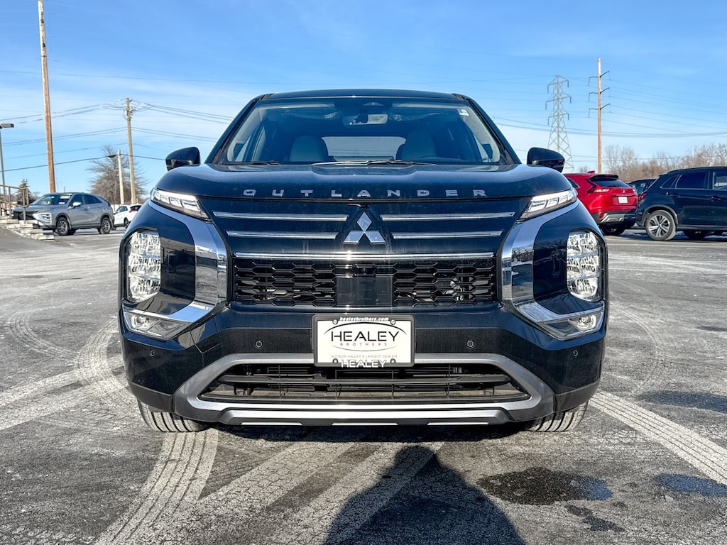 Black 2025 Mitsubishi Outlander 4WD CVT 2.5L I4 DOHC 16V LEV3-ULEV50 181hp 3rd row seats: split-bench, 4-Wheel Disc Brakes, 8 Speakers, ABS brakes, Air Conditioning, Alloy wheels, AM/FM radio: SiriusXM, Android Auto & Apple CarPlay, Auto High-beam Headlights, Auto-dimming Rear-View mirror, Automatic temperature control, Brake assist, Bumpers: body-color, Driver door bin, Driver vanity mirror, Dual front impact airbags, Dual front side impact airbags, Electronic Stability Control, Emergency communication system: Mitsubishi Connect w/ 24-month trial, Exterior Parking Camera Rear, Four wheel independent suspension, Front anti-roll bar, Front Bucket Seats, Front Center Armrest w/Storage, Front dual zone A/C, Front fog lights, Front reading lights, Fully automatic headlights, Garage door transmitter: HomeLink, Headlight cleaning, Heated door mirrors, Heated Front Bucket Seats, Heated front seats, Illuminated entry, Knee airbag, Leather Shift Knob, Leather steering wheel, Low tire pressure warning, Navigation System, Occupant sensing airbag, Outside temperature display, Overhead airbag, Overhead console, Panic alarm, Passenger door bin, Passenger vanity mirror, Power door mirrors, Power driver seat, Power Liftgate, Power steering, Power windows, Radio data system, Radio: AM/FM 12.3" Navigation w/Smartphone-Link, Rain sensing wipers, Rear anti-roll bar, Rear seat center armrest, Rear side impact airbag, Rear window defroster, Rear window wiper, Reclining 3rd row seat, Remote keyless entry, Security system, Speed control, Speed-Sensitive Wipers, Split folding rear seat, Spoiler, Steering wheel mounted audio controls, Synthetic Leather Seating Surfaces, Tachometer, Telescoping steering wheel, Tilt steering wheel, Traction control, Trip computer, Turn signal indicator mirrors, Variably intermittent wipers.