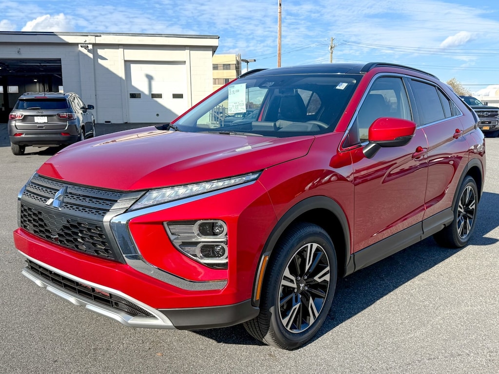 Red 2026 Mitsubishi Eclipse Cross 4WD CVT 1.5L I4 DI Turbocharged DOHC 16V LEV3-ULEV125 152hp 4-Wheel Disc Brakes, 6 Speakers, ABS brakes, Air Conditioning, Alloy wheels, AM/FM radio: SiriusXM, Android Auto & Apple CarPlay, Auto High-beam Headlights, Auto-dimming Rear-View mirror, Automatic temperature control, Blind Spot Warning, Brake assist, Bumpers: body-color, Delay-off headlights, Driver door bin, Driver vanity mirror, Dual front impact airbags, Dual front side impact airbags, Electronic Stability Control, Emergency communication system, Exterior Parking Camera Rear, Four wheel independent suspension, Front anti-roll bar, Front Bucket Seats, Front Center Armrest, Front dual zone A/C, Front fog lights, Front reading lights, Fully automatic headlights, Heated door mirrors, Heated Front Bucket Seats, Heated front seats, Illuminated entry, Knee airbag, Low tire pressure warning, Occupant sensing airbag, Outside temperature display, Overhead airbag, Overhead console, Panic alarm, Passenger door bin, Passenger vanity mirror, Power door mirrors, Power driver seat, Power Liftgate, Power steering, Power windows, Radio data system, Radio: AM/FM 8.0" Smartphone-Link Display Audio, Rain sensing wipers, Rear anti-roll bar, Rear seat center armrest, Rear window defroster, Rear window wiper, Remote keyless entry, Security system, Speed control, Speed-sensing steering, Split folding rear seat, Spoiler, Steering wheel mounted audio controls, Tachometer, Telescoping steering wheel, Tilt steering wheel, Traction control, Trip computer, Turn signal indicator mirrors, Variably intermittent wipers.