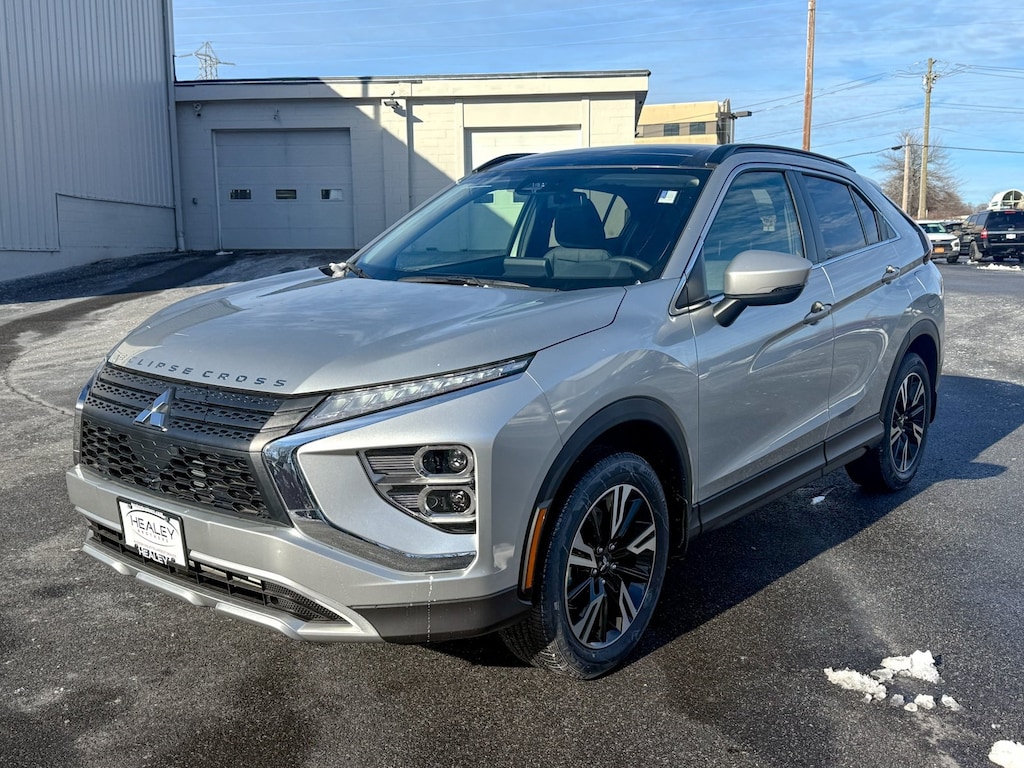 Silver 2026 Mitsubishi Eclipse Cross 4WD CVT 1.5L I4 DI Turbocharged DOHC 16V LEV3-ULEV125 152hp 4-Wheel Disc Brakes, 6 Speakers, ABS brakes, Air Conditioning, Alloy wheels, AM/FM radio: SiriusXM, Android Auto & Apple CarPlay, Auto High-beam Headlights, Auto-dimming Rear-View mirror, Automatic temperature control, Blind Spot Warning, Brake assist, Bumpers: body-color, Delay-off headlights, Driver door bin, Driver vanity mirror, Dual front impact airbags, Dual front side impact airbags, Electronic Stability Control, Emergency communication system, Exterior Parking Camera Rear, Four wheel independent suspension, Front anti-roll bar, Front Bucket Seats, Front Center Armrest, Front dual zone A/C, Front fog lights, Front reading lights, Fully automatic headlights, Heated door mirrors, Heated Front Bucket Seats, Heated front seats, Illuminated entry, Knee airbag, Low tire pressure warning, Occupant sensing airbag, Outside temperature display, Overhead airbag, Overhead console, Panic alarm, Passenger door bin, Passenger vanity mirror, Power door mirrors, Power driver seat, Power Liftgate, Power steering, Power windows, Radio data system, Radio: AM/FM 8.0" Smartphone-Link Display Audio, Rain sensing wipers, Rear anti-roll bar, Rear seat center armrest, Rear window defroster, Rear window wiper, Remote keyless entry, Security system, Speed control, Speed-sensing steering, Split folding rear seat, Spoiler, Steering wheel mounted audio controls, Tachometer, Telescoping steering wheel, Tilt steering wheel, Traction control, Trip computer, Turn signal indicator mirrors, Variably intermittent wipers.
