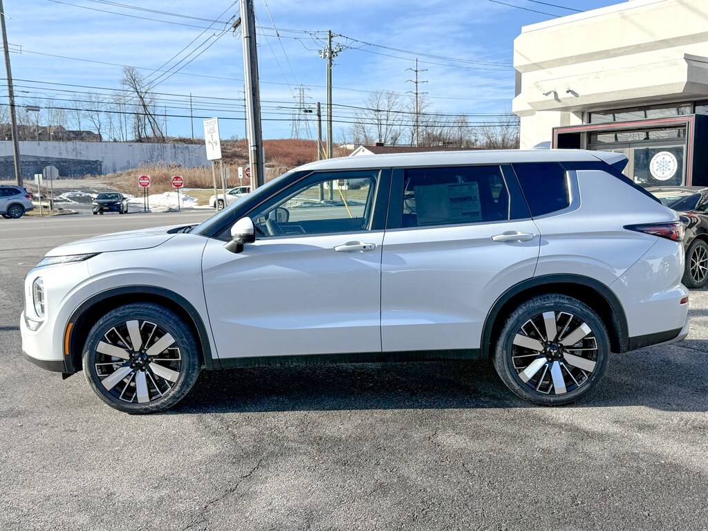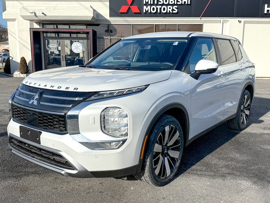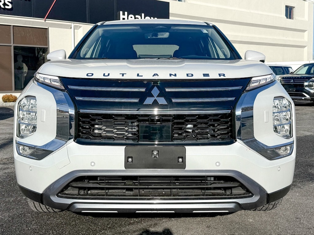 White 2026 Mitsubishi Outlander 4WD CVT 1.5L I4 Turbocharged DOHC 16V LEV3-SULEV30 174hp 3rd row seats: split-bench, 4-Wheel Disc Brakes, 8 Speakers, ABS brakes, Air Conditioning, Alloy wheels, AM/FM radio: SiriusXM, Android Auto & Apple CarPlay, Auto High-beam Headlights, Auto-dimming Rear-View mirror, Automatic temperature control, Brake assist, Bumpers: body-color, Driver door bin, Driver vanity mirror, Dual front impact airbags, Dual front side impact airbags, Electronic Stability Control, Emergency communication system: Mitsubishi Connect w/ 24-month trial, Exterior Parking Camera Rear, Four wheel independent suspension, Front anti-roll bar, Front Bucket Seats, Front Center Armrest w/Storage, Front dual zone A/C, Front fog lights, Front reading lights, Fully automatic headlights, Headlight cleaning, Heated door mirrors, Heated Front Bucket Seats, Heated front seats, Illuminated entry, Knee airbag, Leather Shift Knob, Leather steering wheel, Low tire pressure warning, Navigation System, Occupant sensing airbag, Outside temperature display, Overhead airbag, Overhead console, Panic alarm, Passenger door bin, Passenger vanity mirror, Power door mirrors, Power driver seat, Power steering, Power windows, Radio data system, Radio: AM/FM 12.3" Navigation with Smartphone-Link, Rain sensing wipers, Rear anti-roll bar, Rear seat center armrest, Rear side impact airbag, Rear window defroster, Rear window wiper, Reclining 3rd row seat, Remote keyless entry, Security system, Speed control, Speed-Sensitive Wipers, Split folding rear seat, Spoiler, Steering wheel mounted audio controls, Synthetic Leather Seating Surfaces, Tachometer, Telescoping steering wheel, Tilt steering wheel, Traction control, Trip computer, Turn signal indicator mirrors, Variably intermittent wipers.