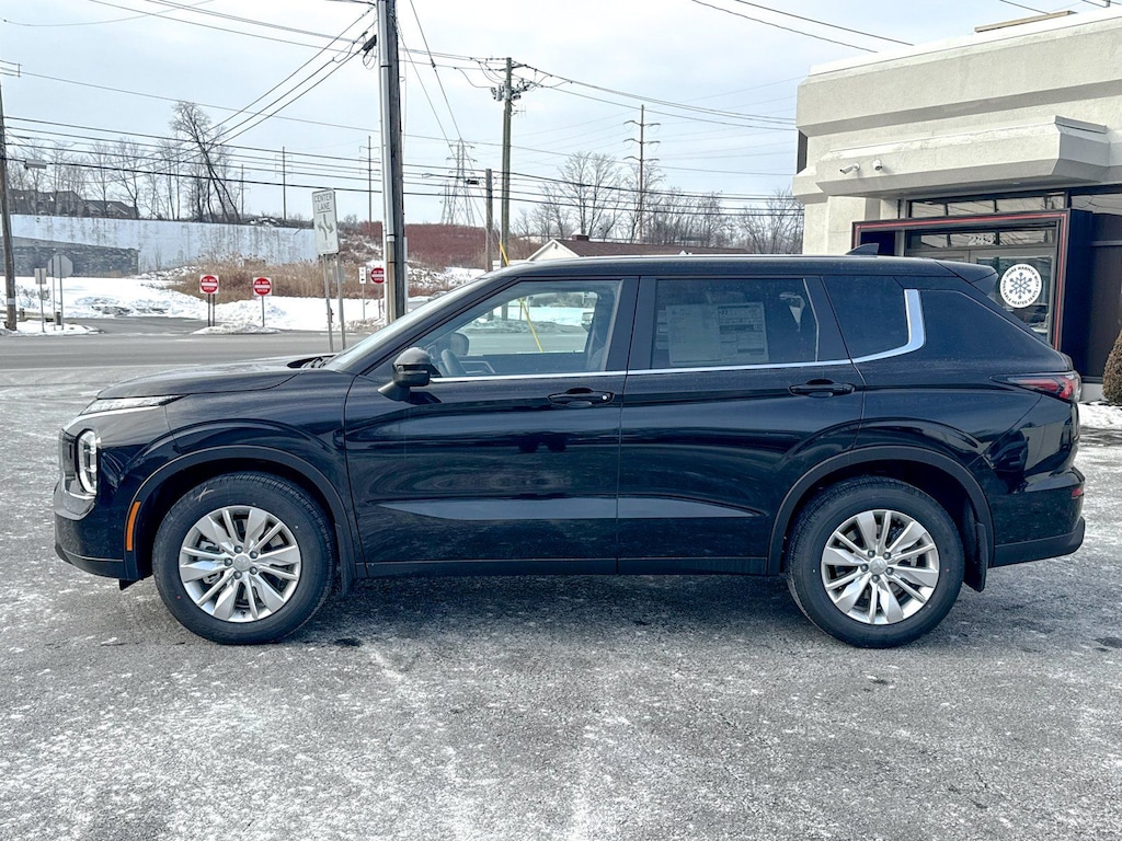Black 2026 Mitsubishi Outlander ES AWD CVT 1.5L I4 Turbocharged DOHC 16V LEV3-SULEV30 174hp 18" Alloy Wheels, 3rd row seats: split-bench, 4-Wheel Disc Brakes, 8 Speakers, ABS brakes, Air Conditioning, Alloy wheels, AM/FM radio: SiriusXM, Android Auto & Apple CarPlay, Auto High-beam Headlights, Auto-dimming Rear-View mirror, Automatic temperature control, Blind Spot Warning, Brake assist, Bumpers: body-color, Cloth Fabric Seating Surfaces, Compass, Delay-off headlights, Driver door bin, Driver vanity mirror, Dual front impact airbags, Dual front side impact airbags, Electronic Stability Control, Emergency communication system: Mitsubishi Connect w/ 24-month trial, Exterior Parking Camera Rear, Four wheel independent suspension, Front anti-roll bar, Front Bucket Seats, Front Center Armrest w/Storage, Front dual zone A/C, Front reading lights, Fully automatic headlights, Headlight cleaning, Heated Front Bucket Seats, Heated front seats, Illuminated entry, Knee airbag, Low tire pressure warning, Navigation System, Occupant sensing airbag, Outside temperature display, Overhead airbag, Overhead console, Panic alarm, Passenger door bin, Passenger vanity mirror, Power door mirrors, Power steering, Power windows, Radio data system, Radio: AM/FM 12.3" Navigation with Smartphone-Link, Rear anti-roll bar, Rear Parking Sensors, Rear seat center armrest, Rear side impact airbag, Rear window defroster, Rear window wiper, Reclining 3rd row seat, Remote keyless entry, Security system, Speed control, Speed-Sensitive Wipers, Split folding rear seat, Spoiler, Steering wheel mounted audio controls, Tachometer, Telescoping steering wheel, Tilt steering wheel, Traction control, Trip computer, Turn signal indicator mirrors, Variably intermittent wipers. Don't be tricked by below market priced vehicles that charge exorbitant documentation and prep fees. Our pricing is fair, concise and the only documentation fee charged is $175. Check our Google reviews and allow our customers to tell you where you should consider purchasing a pre-owned vehicle in the Tri-State area.