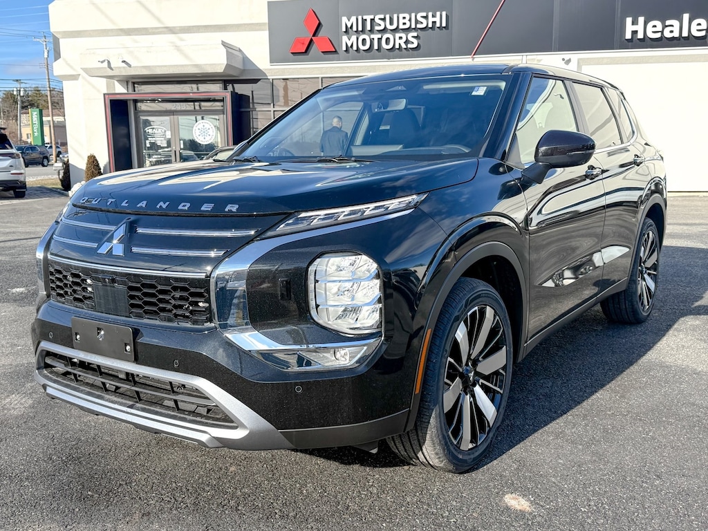Black 2026 Mitsubishi Outlander 4WD CVT 1.5L I4 Turbocharged DOHC 16V LEV3-SULEV30 174hp 3rd row seats: split-bench, 4-Wheel Disc Brakes, 8 Speakers, ABS brakes, Air Conditioning, Alloy wheels, AM/FM radio: SiriusXM, Android Auto & Apple CarPlay, Auto High-beam Headlights, Auto-dimming Rear-View mirror, Automatic temperature control, Brake assist, Bumpers: body-color, Driver door bin, Driver vanity mirror, Dual front impact airbags, Dual front side impact airbags, Electronic Stability Control, Emergency communication system: Mitsubishi Connect w/ 24-month trial, Exterior Parking Camera Rear, Four wheel independent suspension, Front anti-roll bar, Front Bucket Seats, Front Center Armrest w/Storage, Front dual zone A/C, Front fog lights, Front reading lights, Fully automatic headlights, Headlight cleaning, Heated door mirrors, Heated Front Bucket Seats, Heated front seats, Illuminated entry, Knee airbag, Leather Shift Knob, Leather steering wheel, Low tire pressure warning, Navigation System, Occupant sensing airbag, Outside temperature display, Overhead airbag, Overhead console, Panic alarm, Passenger door bin, Passenger vanity mirror, Power door mirrors, Power driver seat, Power steering, Power windows, Radio data system, Radio: AM/FM 12.3" Navigation with Smartphone-Link, Rain sensing wipers, Rear anti-roll bar, Rear seat center armrest, Rear side impact airbag, Rear window defroster, Rear window wiper, Reclining 3rd row seat, Remote keyless entry, Security system, Speed control, Speed-Sensitive Wipers, Split folding rear seat, Spoiler, Steering wheel mounted audio controls, Synthetic Leather Seating Surfaces, Tachometer, Telescoping steering wheel, Tilt steering wheel, Traction control, Trip computer, Turn signal indicator mirrors, Variably intermittent wipers.