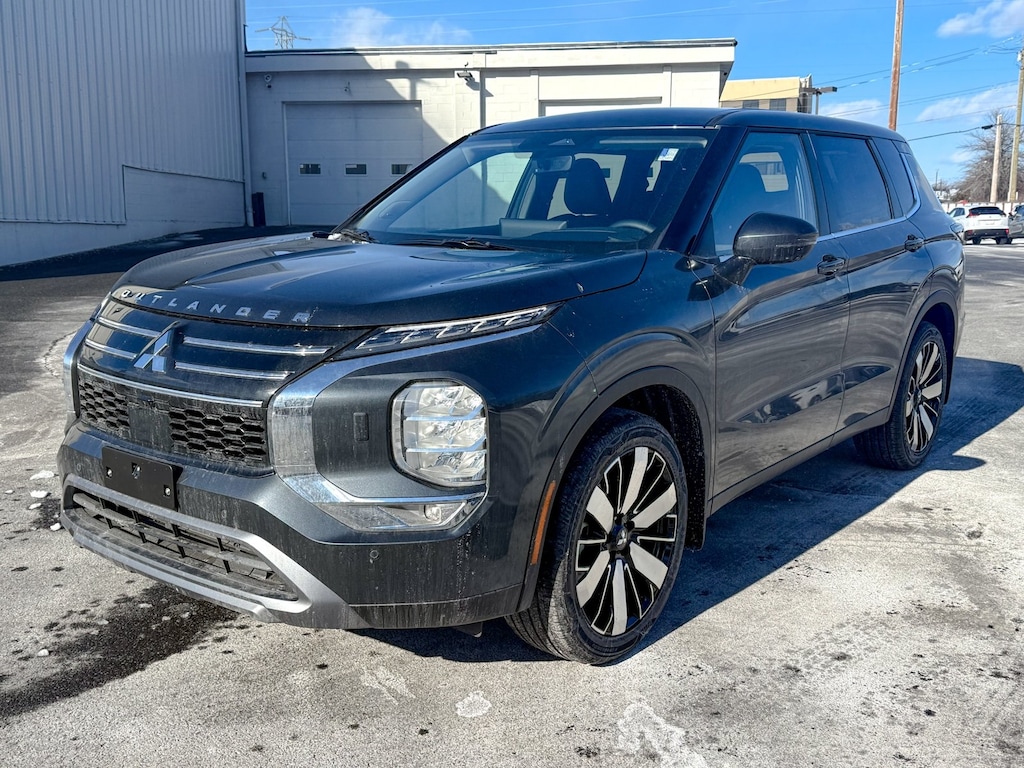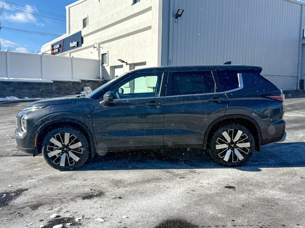 Gray 2026 Mitsubishi Outlander 4WD CVT 1.5L I4 Turbocharged DOHC 16V LEV3-SULEV30 174hp 3rd row seats: split-bench, 4-Wheel Disc Brakes, 8 Speakers, ABS brakes, Air Conditioning, Alloy wheels, AM/FM radio: SiriusXM, Android Auto & Apple CarPlay, Auto High-beam Headlights, Auto-dimming Rear-View mirror, Automatic temperature control, Brake assist, Bumpers: body-color, Compass, Delay-off headlights, Driver door bin, Driver vanity mirror, Dual front impact airbags, Dual front side impact airbags, Electronic Stability Control, Emergency communication system: Mitsubishi Connect w/ 24-month trial, Exterior Parking Camera Rear, Four wheel independent suspension, Front anti-roll bar, Front Bucket Seats, Front Center Armrest w/Storage, Front dual zone A/C, Front fog lights, Front reading lights, Fully automatic headlights, Headlight cleaning, Heated door mirrors, Heated Front Bucket Seats, Heated front seats, Illuminated entry, Knee airbag, Leather Shift Knob, Leather steering wheel, Low tire pressure warning, Navigation System, Occupant sensing airbag, Outside temperature display, Overhead airbag, Overhead console, Panic alarm, Passenger door bin, Passenger vanity mirror, Power door mirrors, Power driver seat, Power steering, Power windows, Radio data system, Radio: AM/FM 12.3" Navigation with Smartphone-Link, Rain sensing wipers, Rear anti-roll bar, Rear seat center armrest, Rear side impact airbag, Rear window defroster, Rear window wiper, Reclining 3rd row seat, Remote keyless entry, Security system, Speed control, Speed-Sensitive Wipers, Split folding rear seat, Spoiler, Steering wheel mounted audio controls, Synthetic Leather Seating Surfaces, Tachometer, Telescoping steering wheel, Tilt steering wheel, Traction control, Trip computer, Turn signal indicator mirrors, Variably intermittent wipers.
