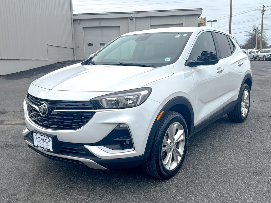 Summit White 2023 Buick Encore GX Preferred AWD 9-Speed Automatic ECOTEC 1.3L Turbo 2 USB Ports w/Auxiliary Input Jack, 2-Way Power Driver Lumbar Control, 3.17 Final Drive Axle Ratio, 4-Way Manual Passenger Seat Adjuster, 4-Wheel Disc Brakes, 6 Speakers, 6-Way Manual Driver Seat Adjuster, 8-Way Power Driver Seat Adjuster, ABS brakes, Air Conditioning, All-Weather Floor Liners (LPO), Alloy wheels, AM/FM radio: SiriusXM, Auto High-beam Headlights, Automatic temperature control, Brake assist, Bumpers: body-color, Cloth w/Leatherette Seat Trim, Cold Weather Comfort Package, Compass, Delay-off headlights, Driver door bin, Driver vanity mirror, Dual front impact airbags, Dual front side impact airbags, Electronic Stability Control, Emergency communication system: OnStar and Buick connected services capable, Enhanced Performance 6-Speaker System, Front anti-roll bar, Front Bucket Seats, Front Center Armrest, Front fog lights, Front License Plate Bracket, Front reading lights, Front wheel independent suspension, Fully automatic headlights, Heated door mirrors, Heated Driver & Front Passenger Seats, Illuminated entry, Knee airbag, Low tire pressure warning, Occupant sensing airbag, Outside temperature display, Overhead airbag, Overhead console, Panic alarm, Passenger door bin, Passenger vanity mirror, Power door mirrors, Power steering, Power windows, Preferred Equipment Group 1SB, Radio data system, Radio: 8" Diagonal Buick Infotainment System, Rear reading lights, Rear side impact airbag, Rear window defroster, Rear window wiper, Remote keyless entry, Remote Vehicle Starter System, Ride & Handling Suspension, Security system, SiriusXM Radio, Speed control, Speed-sensing steering, Split folding rear seat, Spoiler, Steering wheel mounted audio controls, Tachometer, Telescoping steering wheel, Tilt steering wheel, Traction control, Trip computer, Variably intermittent wipers, Wheels: 18" Bright Silver Painted Aluminum, Wireless Apple CarPlay/Wireless Android Auto.