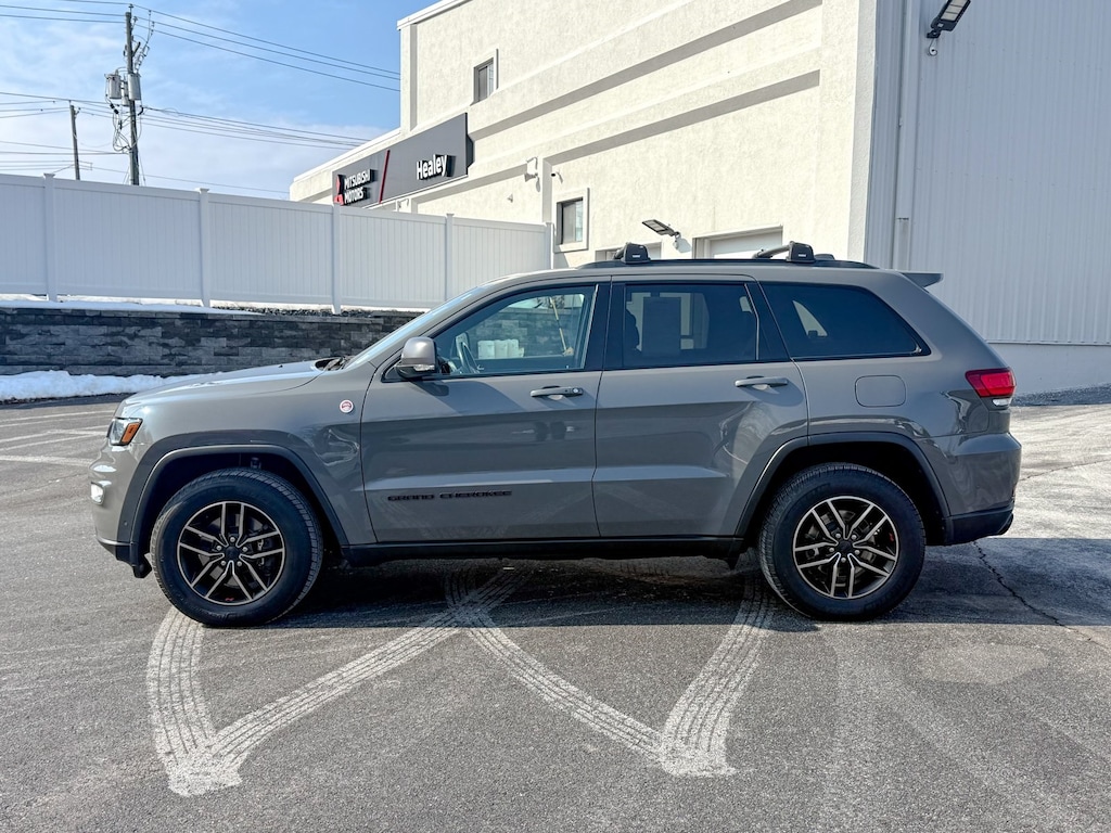 Sting-Gray Clearcoat 2019 Jeep Grand Cherokee Trailhawk 4WD 8-Speed Automatic 5.7L V8 HEMI 10 Speakers, 230MM Rear Axle, 4-Wheel Disc Brakes, 8.4" Touchscreen Display, ABS brakes, Adaptive Cruise Control w/Stop, Advanced Brake Assist, Air Conditioning, Alloy wheels, AM/FM radio: SiriusXM, Anti-whiplash front head restraints, Apple CarPlay/Android Auto, Audio memory, Auto High Beam Headlamp Control, Auto-dimming door mirrors, Auto-dimming Rear-View mirror, Auto-leveling suspension, Automatic temperature control, Bi-Xenon High-Intensity Discharge Headlamps, Brake assist, Bumpers: body-color, Cargo Compartment Cover, Compass, Delay-off headlights, Driver door bin, Driver vanity mirror, Dual Bright Exhaust Tips, Dual front impact airbags, Dual front side impact airbags, Dual-Pane Panoramic Sunroof, Electronic Stability Control, Emergency communication system: SiriusXM Guardian, Four wheel independent suspension, Front anti-roll bar, Front Bucket Seats, Front Center Armrest w/Storage, Front dual zone A/C, Front fog lights, Front LED Fog Lamps, Front License Plate Bracket, Front reading lights, Full Speed FWD Collision Warn Plus, Fully automatic headlights, Garage door transmitter, Heated door mirrors, Heated front seats, Heated rear seats, Heated steering wheel, Heavy-Duty Engine Cooling, Illuminated entry, Jeep Advanced Active Safety Group, Knee airbag, Lane Departure Warning Plus, Leather Shift Knob, LED Daytime Running Headlamps, Low tire pressure warning, Memory seat, Navigation System, Normal Duty Suspension - Increased Travel, Occupant sensing airbag, Outside temperature display, Overhead airbag, Overhead console, Panic alarm, Parallel & Perp Park Assist w/Stop, ParkView Rear Back-Up Camera, Passenger door bin, Passenger vanity mirror, Power door mirrors, Power driver seat, Power Liftgate, Power passenger seat, Power steering, Power Tilt/Telescope Steering Column, Power windows, Quadra-Trac II 4WD System, Quick Order Package 22J, Radio data system, Radio: Uconnect 4C Nav w/8.4" Display, Rain Sensitive Windshield Wipers, Rear anti-roll bar, Rear reading lights, Rear seat center armrest, Rear window defroster, Rear window wiper, Remote keyless entry, Roof rack: rails only, Security system, Speed control, Speed-sensing steering, Speed-Sensitive Wipers, Split folding rear seat, Spoiler, Steering wheel mounted audio controls, Tachometer, Telescoping steering wheel, Tilt steering wheel, Traction control, Trailhawk Leather Trim Seats w/Perforation, Trailhawk Leather/Suede Seats, Trailhawk Luxury Group, Trip computer, Turn signal indicator mirrors, Variably intermittent wipers, Ventilated front seats, Voltmeter, Wheels: 18" x 8.0" Off Road Aluminum.
