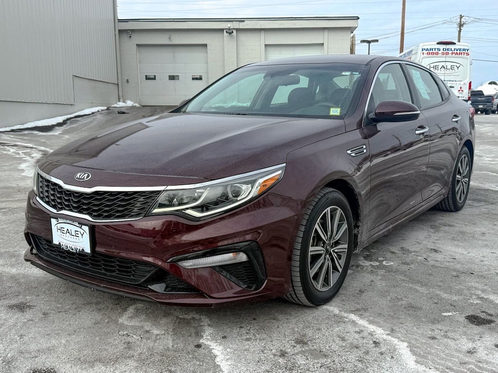 Sangria 2019 Kia Optima LX FWD 6-Speed Automatic with Sportmatic 2.4L I4 DGI DOHC 17" Alloy Wheels, 4-Wheel Disc Brakes, 6 Speakers, 6.5J x 16" Silver Alloy Wheels, ABS brakes, Air Conditioning, Alloy wheels, AM/FM radio, Anti-whiplash front head restraints, Apple CarPlay & Android Auto, Auto High-beam Headlights, Brake assist, Bumpers: body-color, Carpet Floor Mats, Cloth Seat Trim, Delay-off headlights, Driver door bin, Driver vanity mirror, Dual front impact airbags, Dual front side impact airbags, Electronic Stability Control, Four wheel independent suspension, Front anti-roll bar, Front Bucket Seats, Front Center Armrest, Front reading lights, Fully automatic headlights, Heated door mirrors, Illuminated entry, Knee airbag, Low tire pressure warning, LX 17" Wheel Package, Occupant sensing airbag, Outside temperature display, Overhead airbag, Overhead console, Panic alarm, Passenger door bin, Passenger vanity mirror, Power door mirrors, Power steering, Power windows, Radio data system, Radio: AM/FM/MP3 Audio System, Rear anti-roll bar, Rear seat center armrest, Rear window defroster, Remote keyless entry, Security system, Speed control, Speed-sensing steering, Split folding rear seat, Steering wheel mounted audio controls, Tachometer, Telescoping steering wheel, Tilt steering wheel, Traction control, Trip computer, Turn signal indicator mirrors, Variably intermittent wipers.
