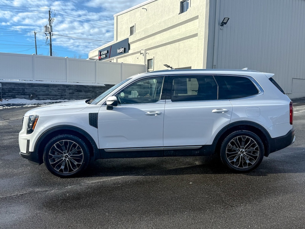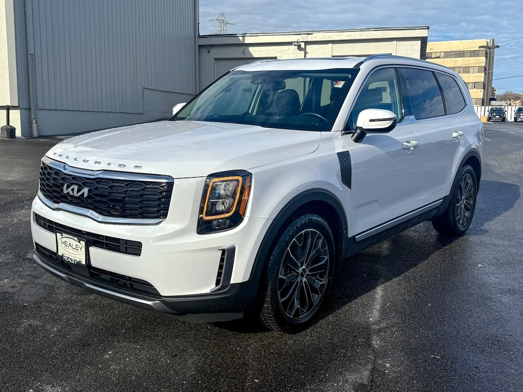 Glacial White Pearl 2022 Kia Telluride EX FWD 8-Speed Automatic 3.8L V6 DOHC 20" x 7.5" Machined Alloy Wheels, 2nd Row Captain Chairs, 3.648 Axle Ratio, 3rd row seats: split-bench, 4-Wheel Disc Brakes, 6 Speakers, ABS brakes, Air Conditioning, Alloy wheels, AM/FM radio: SiriusXM, Apple CarPlay & Android Auto, Auto-dimming Rear-View mirror, Automatic temperature control, Brake assist, Bumpers: body-color, Carpeted Floor Mats, Compass, Delay-off headlights, Driver door bin, Driver vanity mirror, Dual front impact airbags, Dual front side impact airbags, Electronic Stability Control, Emergency communication system: 911 Connect, EX Premium Package, Four wheel independent suspension, Front anti-roll bar, Front Bucket Seats, Front Center Armrest, Front dual zone A/C, Front reading lights, Fully automatic headlights, Heated & Ventilated Front Bucket Seats, Heated door mirrors, Heated front seats, Illuminated entry, Knee airbag, Leather Seat Trim, Leather Shift Knob, Leather steering wheel, LED Headlamps, Low tire pressure warning, Navigation System, Occupant sensing airbag, Outside temperature display, Overhead airbag, Overhead console, Panic alarm, Passenger door bin, Passenger vanity mirror, Power door mirrors, Power driver seat, Power Liftgate, Power moonroof, Power passenger seat, Power steering, Power windows, Radio data system, Radio: AM/FM Display Audio System, Rear air conditioning, Rear anti-roll bar, Rear audio controls, Rear reading lights, Rear seat center armrest, Rear window defroster, Rear window wiper, Reclining 3rd row seat, Remote keyless entry, Roof rack: rails only, Satin Chrome Roof Rails, Security system, Smart Key w/ Push Button and Remote Start, Speed control, Speed-sensing steering, Split folding rear seat, Spoiler, Steering wheel mounted audio controls, Tachometer, Telescoping steering wheel, Tilt steering wheel, Traction control, Trip computer, Turn signal indicator mirrors, Variably intermittent wipers, Ventilated front seats, Wheels: 18" x 7.5" Machined Alloy.