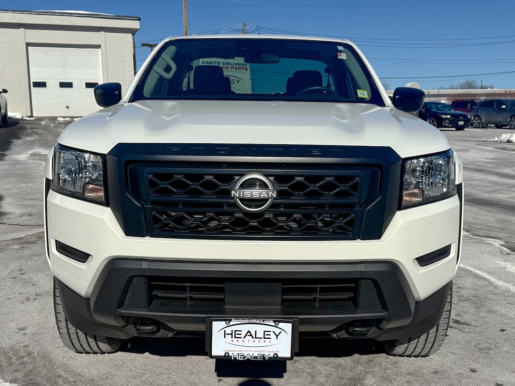 Glacier White 2022 Nissan Frontier S 4WD 9-Speed Automatic 3.8L DI DOHC 24V V6 16" Styled Steel Wheels, 3.692 Axle Ratio, 4-Wheel Disc Brakes, 6 Speakers, ABS brakes, Air Conditioning, AM/FM radio: SiriusXM, Anti-whiplash front head restraints, Apple CarPlay/Android Auto, Auto High-beam Headlights, Brake assist, Bumpers: body-color, Cloth Seat Trim, Delay-off headlights, Driver door bin, Driver vanity mirror, Dual front impact airbags, Dual front side impact airbags, Electronic Stability Control, Floor Mats, Front anti-roll bar, Front Bucket Seats, Front Center Armrest, Front reading lights, Front wheel independent suspension, Fully automatic headlights, Illuminated entry, Knee airbag, Low tire pressure warning, Occupant sensing airbag, Overhead airbag, Panic alarm, Passenger door bin, Passenger vanity mirror, Power steering, Power windows, Radio data system, Radio: SXM/AM/FM/AUX/USB Audio System w/6 Speakers, Rear step bumper, Remote keyless entry, Speed control, Speed-sensing steering, Split folding rear seat, Steering wheel mounted audio controls, Tachometer, Tilt steering wheel, Traction control, Trip computer, Variably intermittent wipers.